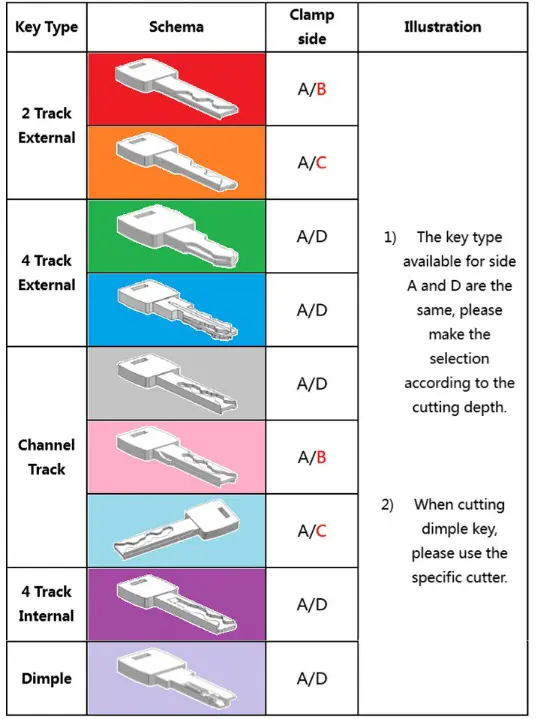 Patented rotating clamp design accommodates a wide variety of key types and blanks